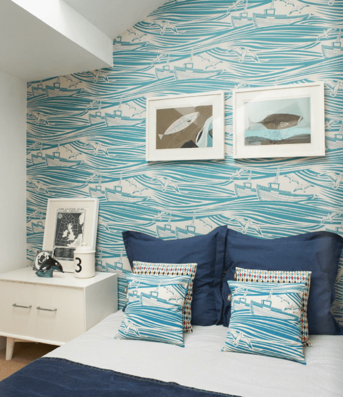 Mini Moderns HQ and the home of Keith and mark was featured in issue 3 of Heart Home magazine. We were very pleased with the photography and story and the whole shoot was a very pleasurable experience. Featured here is Whitby wallpaper in Lido, teamed with Whitby cushions. Also featured are original signed prints by Charley Harper and James Brown.