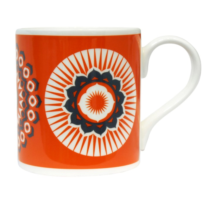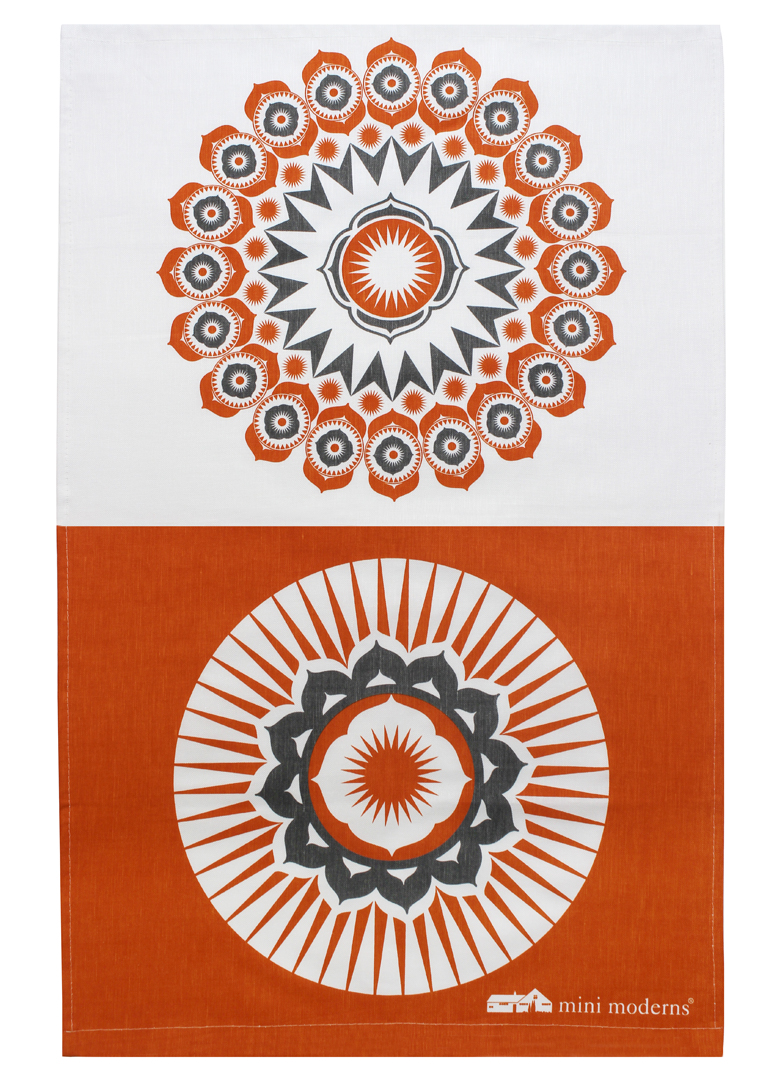 Printed in coordinating Tangerine Dream and grey, hero colours of our new Buddha of Suburbia collection, they have a 70s colour punch and a fabulously modern ethnic feel.
