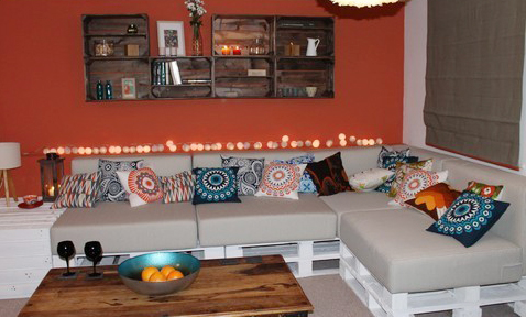 Peter Andre, designer Ben Hillman and the makeover team created a 60 minute makeover in Wandsworth this week, using a selection of Mini Moderns cushions on a sofa unit created by Ben using discarded pallets.