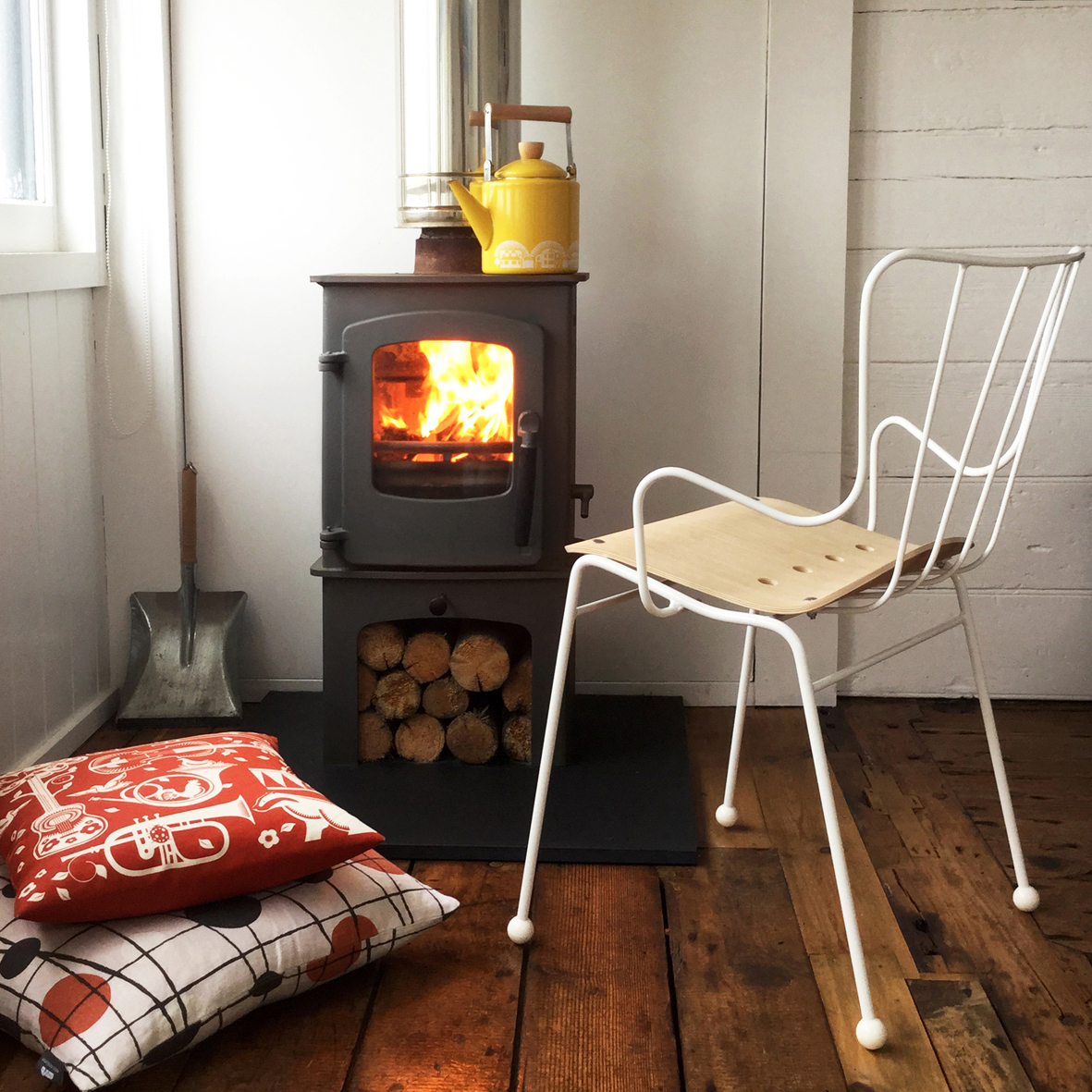 The Antelope chair warming up in front of our Charnwood Cove 1 stove – yes it was cold enough to light the fire!
