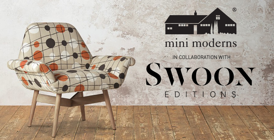 Here’s what Swoon are saying about it “A retro chair and a contemporary fabric give rise to a new design – meet our Designer Edition of the Carnaby chair. Screen-printed by hand in Norfolk, the Pavilion fabric in Harvest Orange is designed by interiors brand, Mini Moderns. With a very hand-drawn feel to it, the print is based on the Abacus Screen of coloured balls created by architect Edward Mills, commemorating the 1951 Festival of Britain. Abstract but not without warmth, the oatmeal and orange tones combined with the sculpted frame bring about a certain softness to this otherwise edgy piece.”